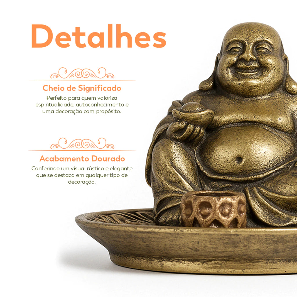 Incensário Buda Chines Prosperidade Fortuna Resina Dourado 8x6cm