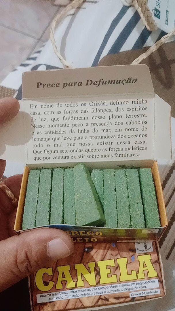 - Abre Caminho - Abre Todos Os Caminhos - Alfazema - Alecrim - Arruda - Anjo Da Guarda - Benjoim - Canela - Chama Dinheiro - Dama Da Noite - Chama Sorte - Chama Freguês - Defesa - Comigo Ninguém Pode - Contra Tudo - Descarrego Completo - Limpeza Do Lar - Mirra - Jasmim - Hei de Vencer - Manjericão - Felicidade do Lar - Guiné - Espiritual - Sândalo - Sal Grosso - Rosa Amarela - Rosa Vermelha - Rosa Branca - Quebra Demanda - Olho Grande - Palo Santo (- Cada caixa tem 20 Tabletes.)