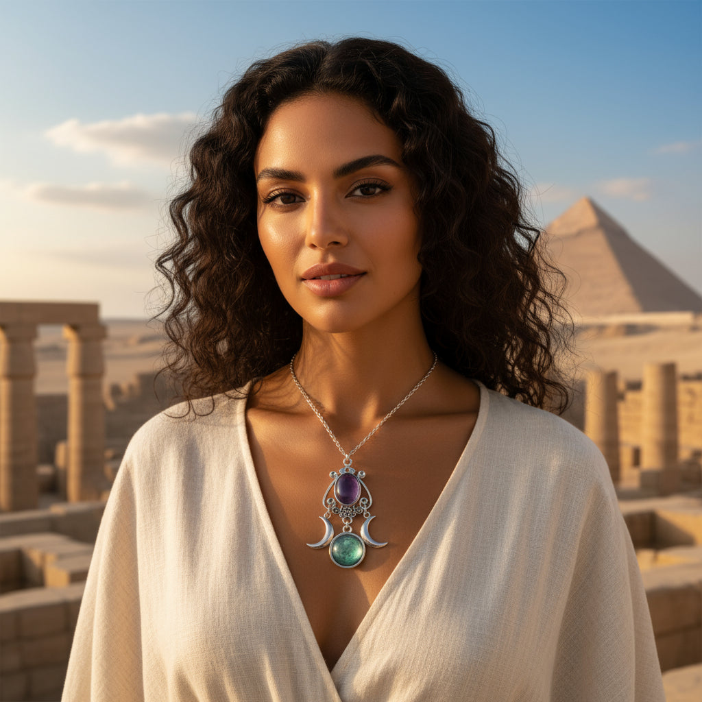 Querida cliente, você merece brilhar como a deusa que é com nosso deslumbrante Colar Com Pingente De Deusa Da Lua Tripla. Este belo colar é o complemento perfeito para qualquer roupa, adicionando um toque de elegância e mistério ao seu visual.