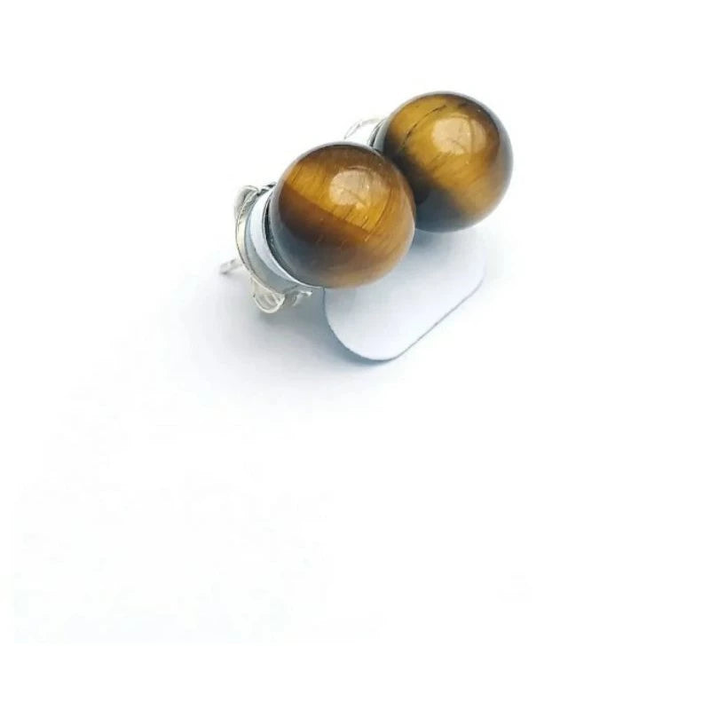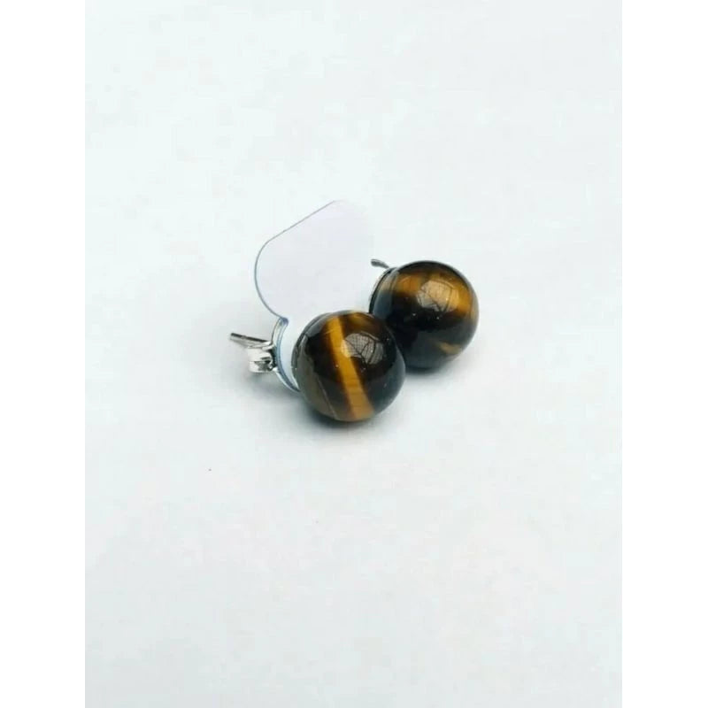 Brinco De Olho De Tigre Pedra Natural Tamanho 10 Mm