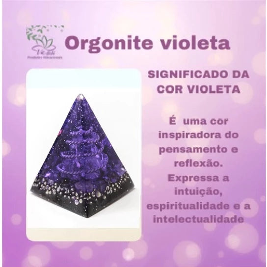 Quais os benefícios do Orgonite? Protege você, sua família, animais de estimação e plantas das energias estáticas, nocivas e radioativas de eletroeletrônicos, aparelhos celulares, computadores, Wi-fi, micro-ondas e demais eletrodomésticos. Capta as energias densas e ocultas de inveja, mau olhado e transmutá-las em energia positiva para o ambiente. Ajuda a ter um sono recuperador, livre de insônia e pesadelos Melhora o foco, concentração e vitalidade. Excelente ajuda na meditação. Alivia o stress e auxilia no tratamento da depressão, ansiedade e fadiga mental. A cor violeta está diretamente relacionada a purificação e transformação. Ela é uma cor que traz sentimentos de dignidade, humildade, individualidade, poder, sabedoria, sossego e tranquilidade. A cor violeta é uma cor inspiradora do pensamento reflexivo, ela expressa a divindade, a intuição espiritual e a intelectualidade.